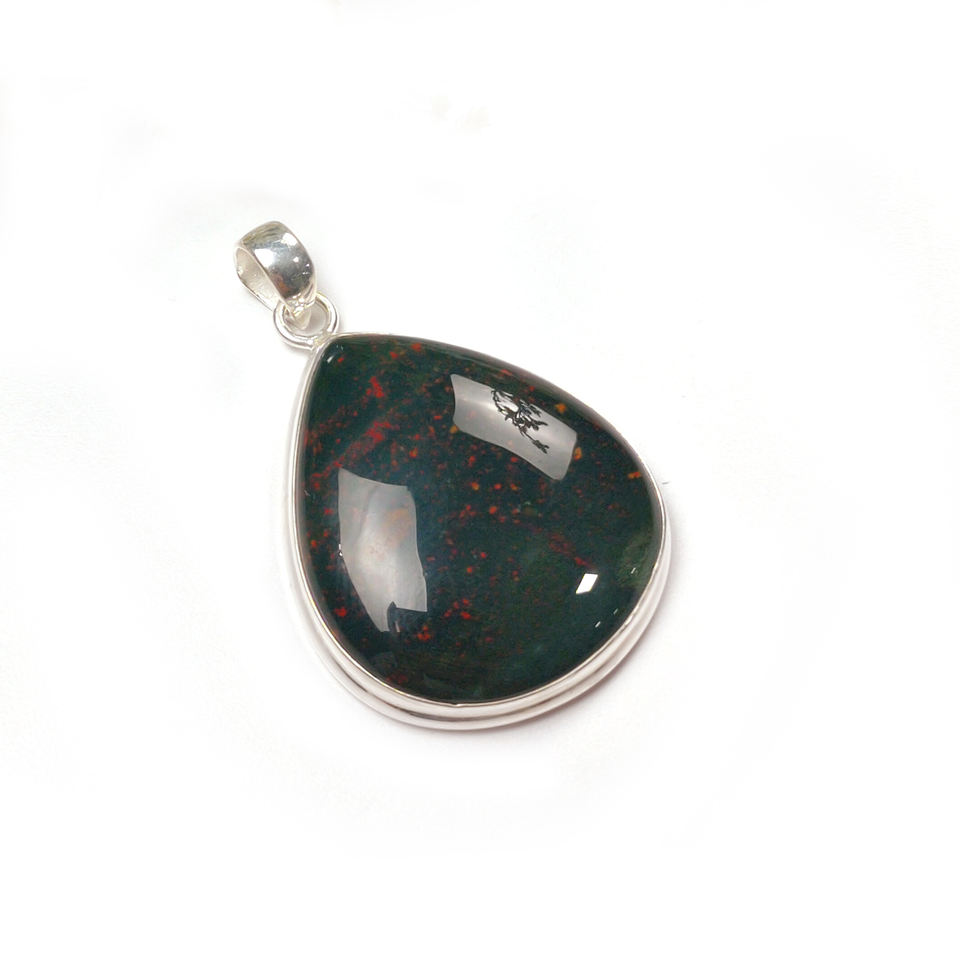 จี้รูปหัวใจประดับหินบลัดสโตน เงินแท้ 925 | เครื่องประดับอัญมณีทำมือสั่งทำพิเศษขายส่ง