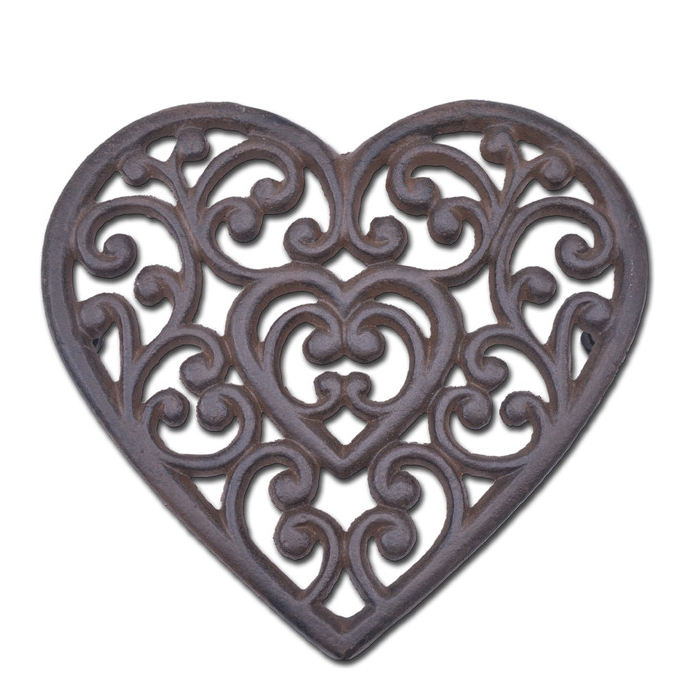 ขาตั้งสามขาโลหะหล่อรูปหัวใจที่วางแผ่นรองโต๊ะทองเหลืองเป็นมิตรกับสิ่งแวดล้อมใช้ในบ้านโรงแรมงานแต่งงานแบบชนบทที่หรูหรา