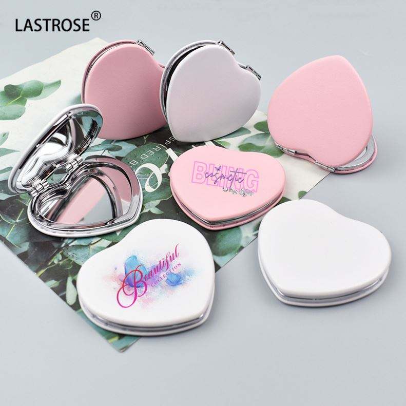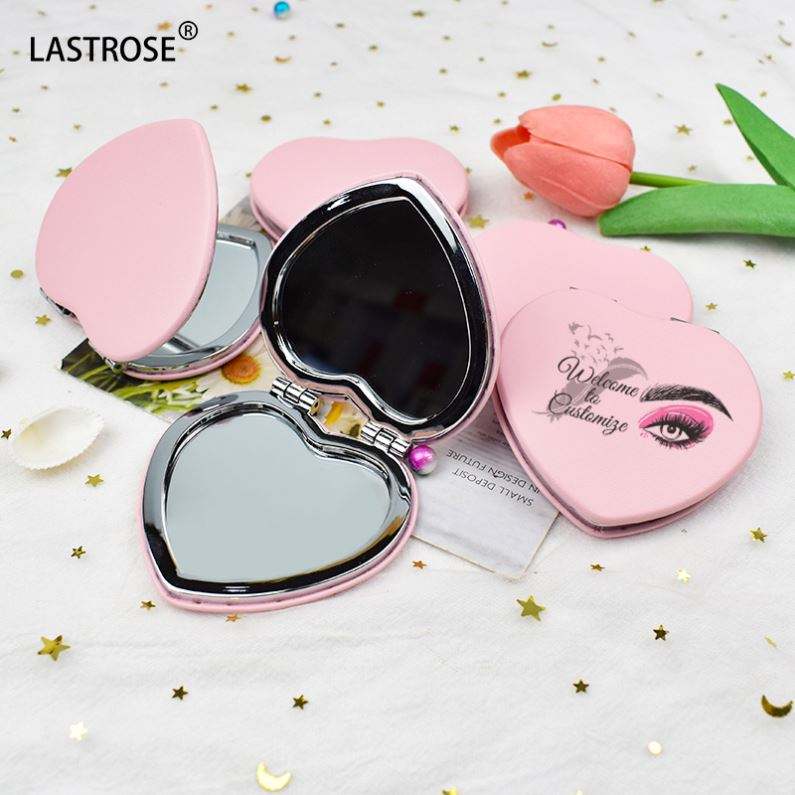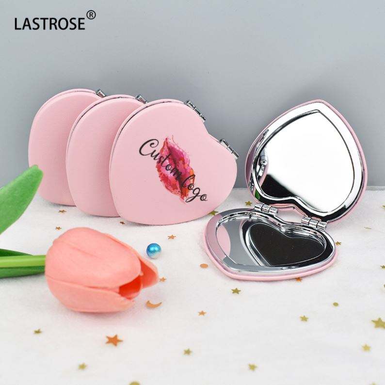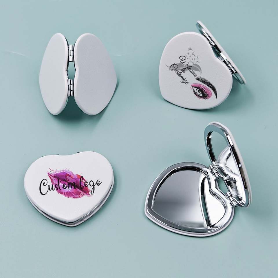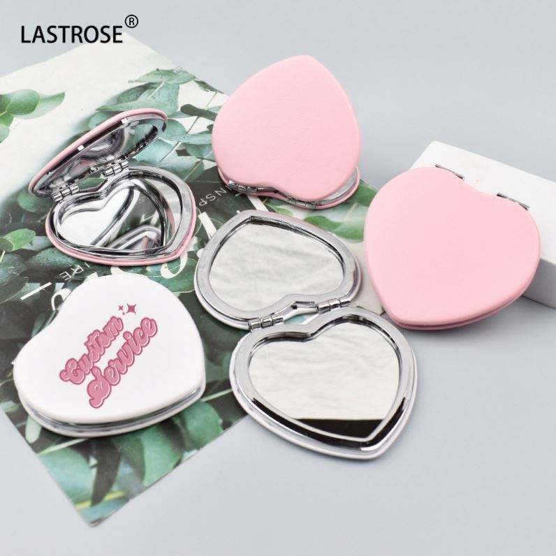 กระจกแต่งหน้ารูปหัวใจน่ารัก ขายส่ง กระจกพับสองด้าน PU กระจกแต่งหน้าแบบสั่งทำแบรนด์ส่วนตัว