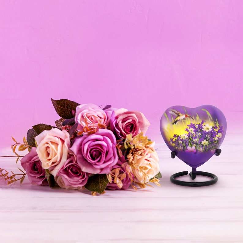 ที่เผาศพรูปหัวใจนกฮัมมิงเบิร์ดสำหรับผู้ใหญ่โกศโลหะของมนุษย์สำหรับงานศพแม่ขนาดเล็ก