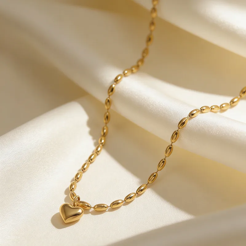 สร้อยคอรูปหัวใจสำหรับผู้หญิง ดีไซน์สามมิติ ทำจากสแตนเลส 304 พร้อมเคลือบ PVD ชุบทองคำแท้ 18K