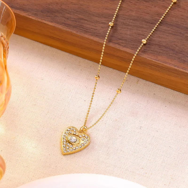 สร้อยคอรูปหัวใจสำหรับผู้หญิง ทำจากสแตนเลส 304 ชุบทองคำแท้ 18K ความหนา 0.03µm พร้อมกระจกฝังบนสายเคเบิล