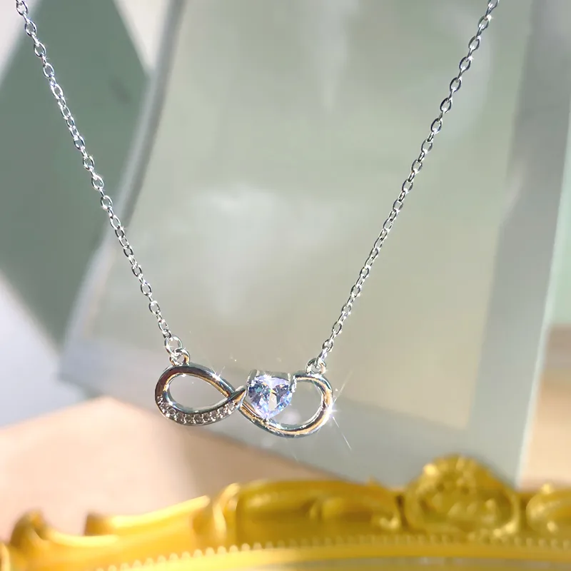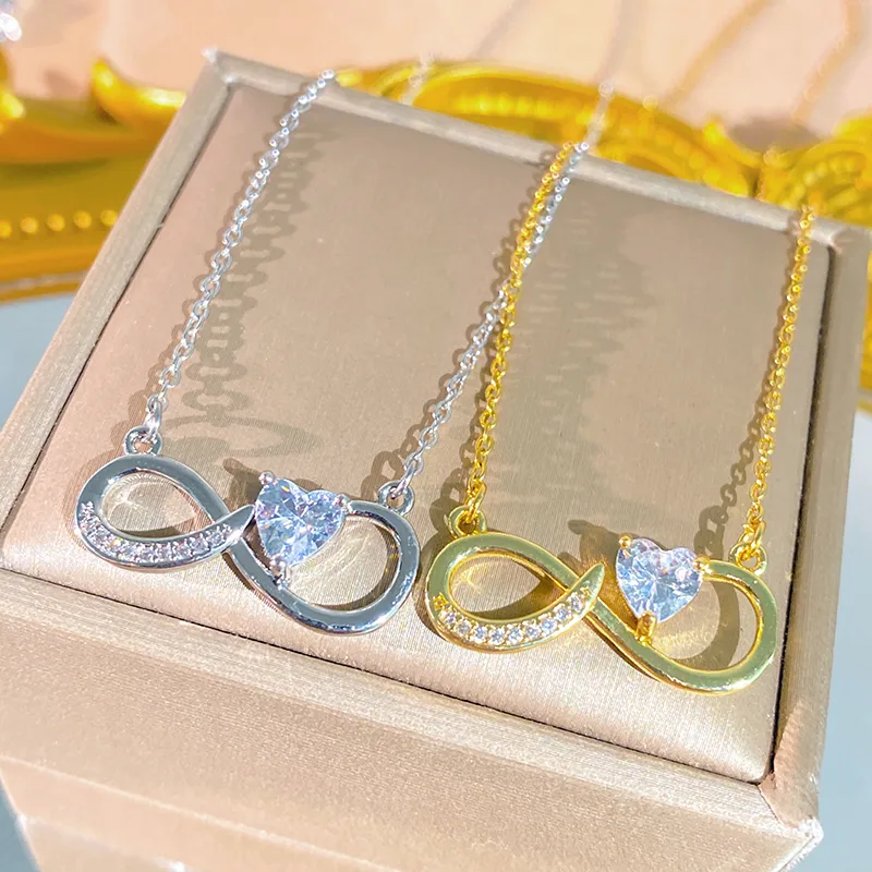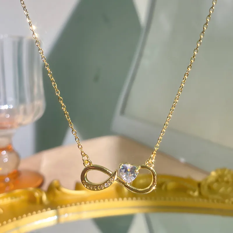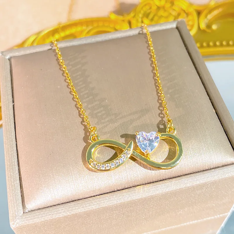 สร้อยคอรูปหัวใจสำหรับผู้หญิงทำจากสแตนเลส 304 พร้อมชุบทอง 0.03µm ประดับเพชรซิร์คอนบนสายโซ่
