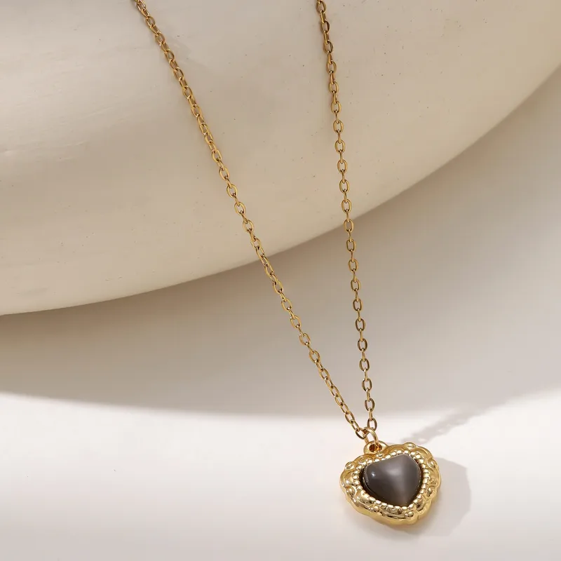 สร้อยคอรูปหัวใจสำหรับผู้หญิงสไตล์ใหม่ ทำจากไทเทเนียมสตีล ชุบทองคำแท้ 18K และเคลือบ PVD ประดับด้วยหินตาแมว