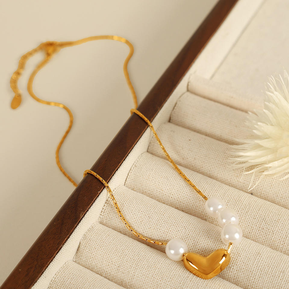 สร้อยคอไข่มุกรูปหัวใจ โซ่ทอง สำหรับผู้หญิง สวมใส่ได้ทุกวัน XL278