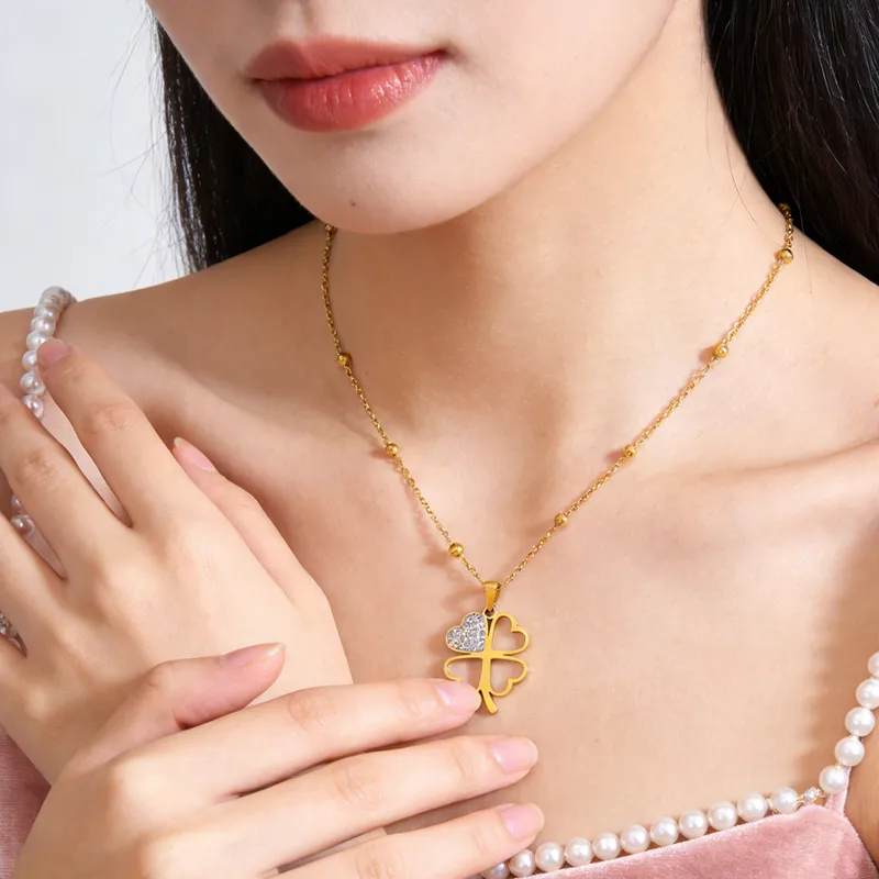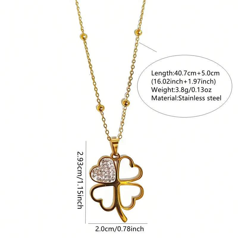 สร้อยคอจี้รูปหัวใจสำหรับผู้หญิง ทำจากสแตนเลส 304 ชุบทอง 18K พร้อมฝังกระจก