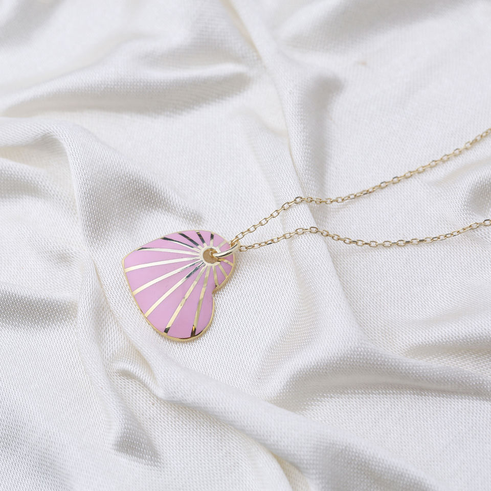 รูปหัวใจสีชมพูเคลือบจี้ Handcrafted ตุรกีทำด้วยมือขายส่ง925เครื่องประดับเงินสเตอร์ลิง