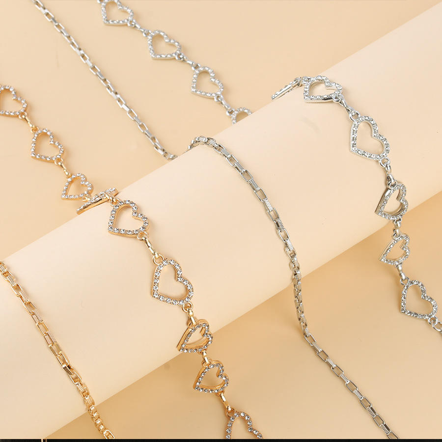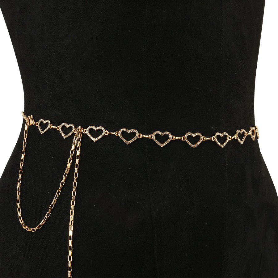 โซ่ประดับร่างกายรูปหัวใจประดับเพชรเทียม โลหะผสมสังกะสี สีเงิน สำหรับสวมใส่ทุกวัน เครื่องประดับแฟชั่น เข็มขัดเสริม