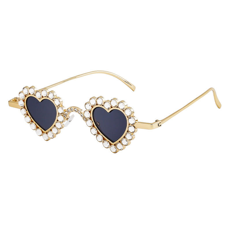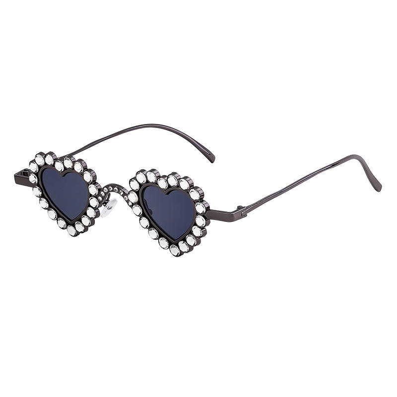 แว่นกันแดดไรน์สโตนรูปหัวใจสำหรับผู้หญิง UV400 กรอบพีซีคลาส 2 แว่นกันแดดแฟชั่นปาร์ตี้สวมใส่กลางแจ้ง