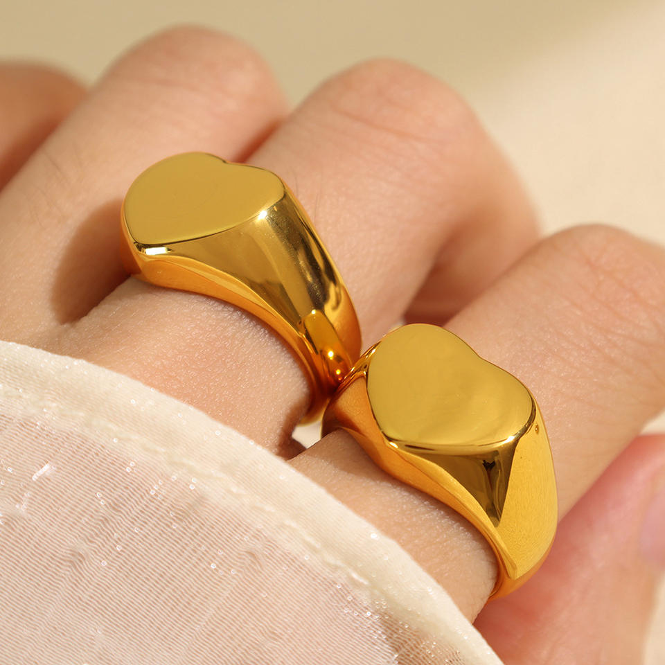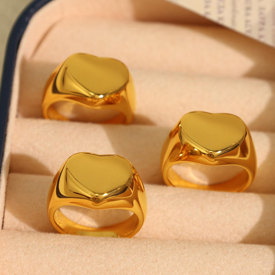 แหวนรูปหัวใจเหล็กไทเทเนียมชุบทองสำหรับผู้หญิงแฟชั่นเครื่องประดับของขวัญ