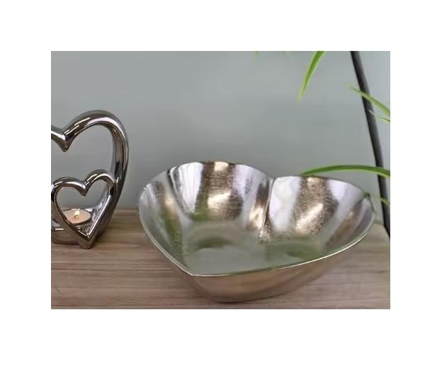 ชามโลหะขัดเงาสีเงินรูปหัวใจใช้งานหนักสำหรับผลไม้และสินค้าอื่นๆชามเสิร์ฟและของตกแต่งโต๊ะ