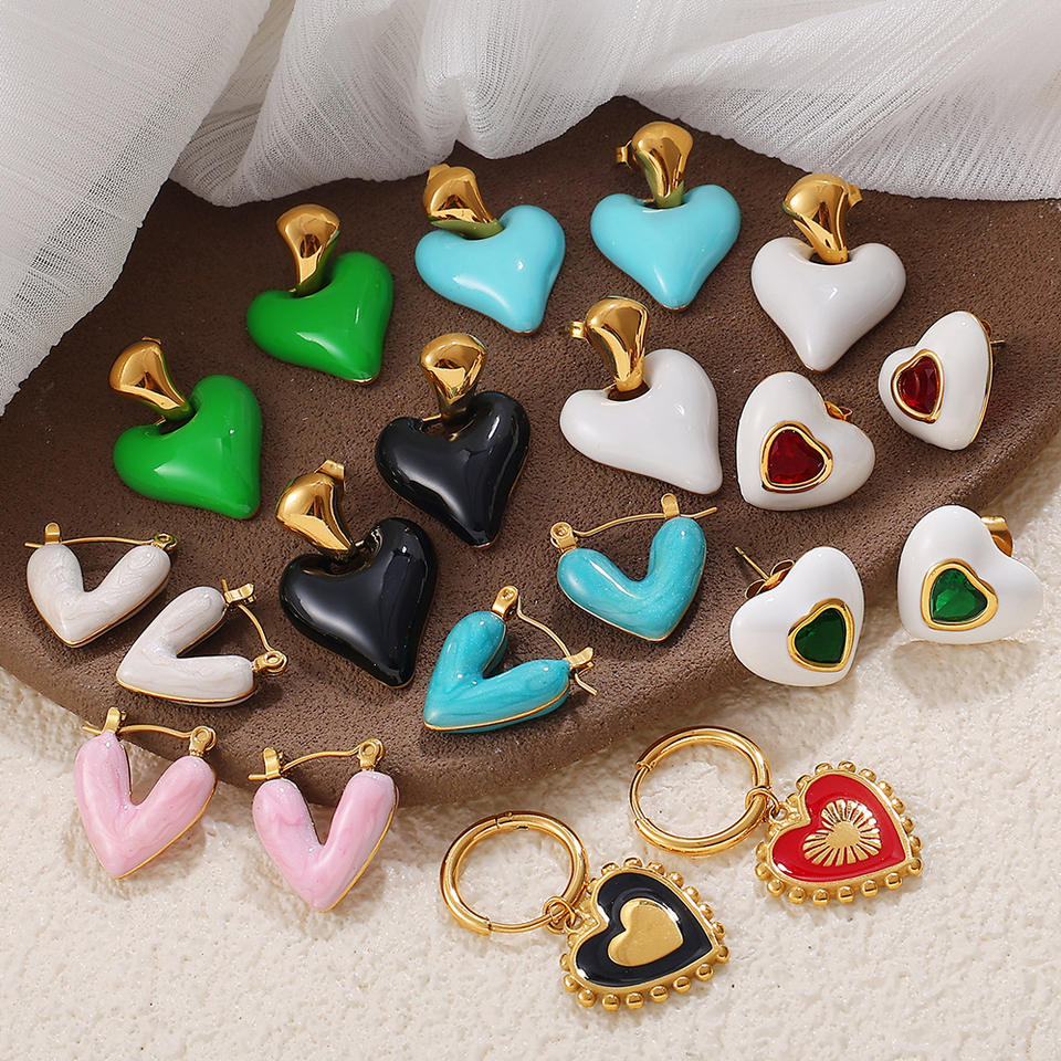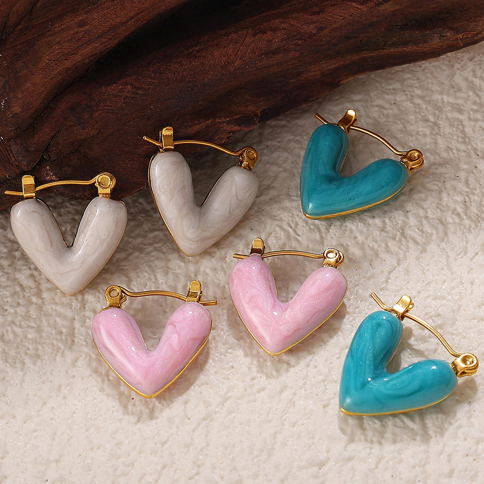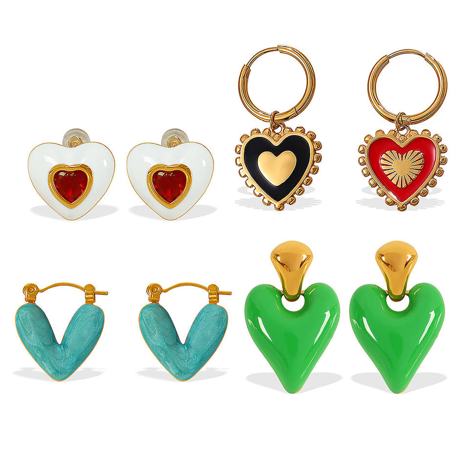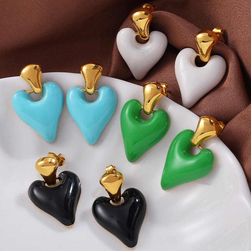 ต่างหูรูปหัวใจสแตนเลสดีไซน์ไม่สม่ำเสมอสำหรับผู้หญิงเครื่องประดับแฟชั่น