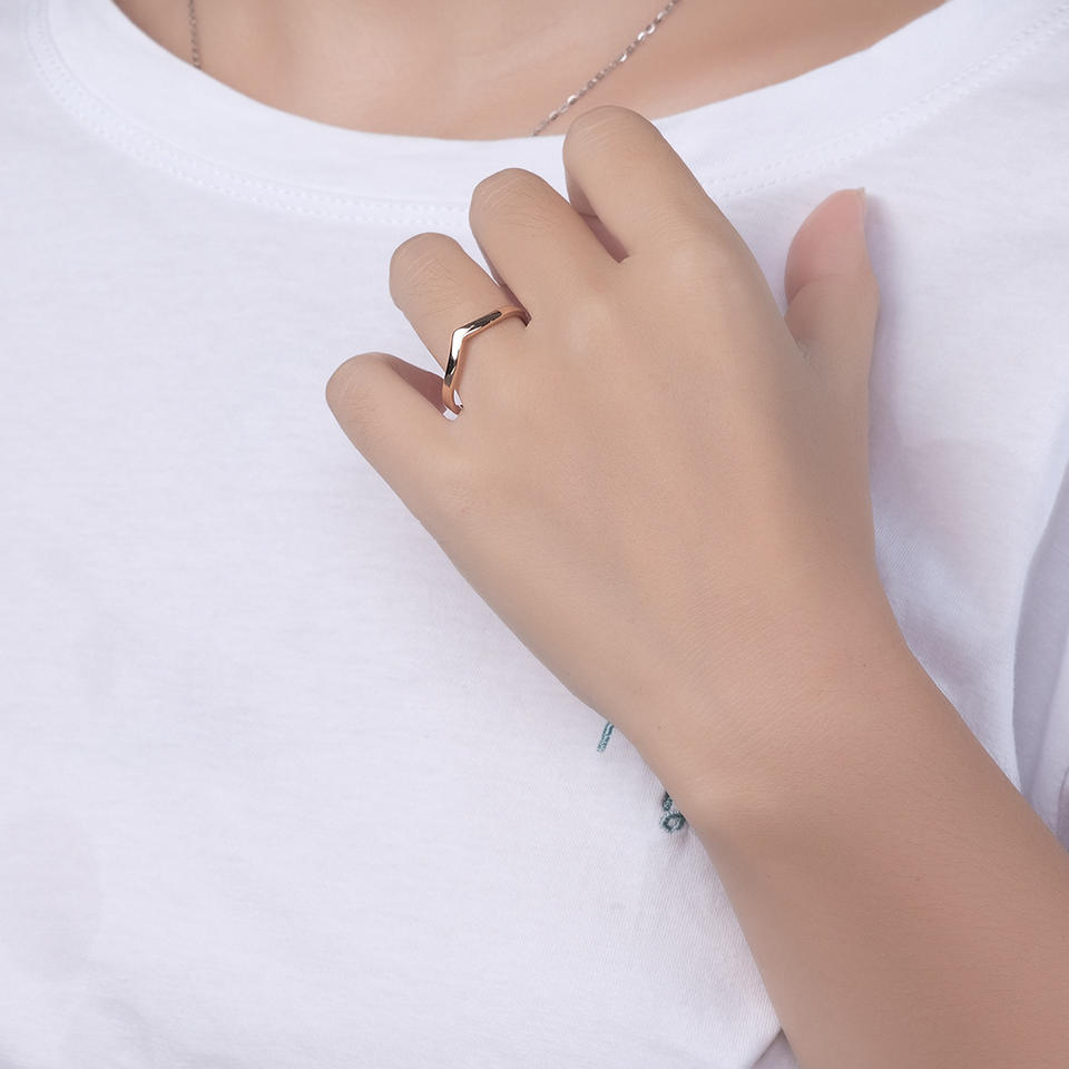 รูปหัวใจแหวนเหล็กไทเทเนียมสำหรับผู้หญิงสีทองเรียบการออกแบบทางเรขาคณิตของขวัญเครื่องประดับ