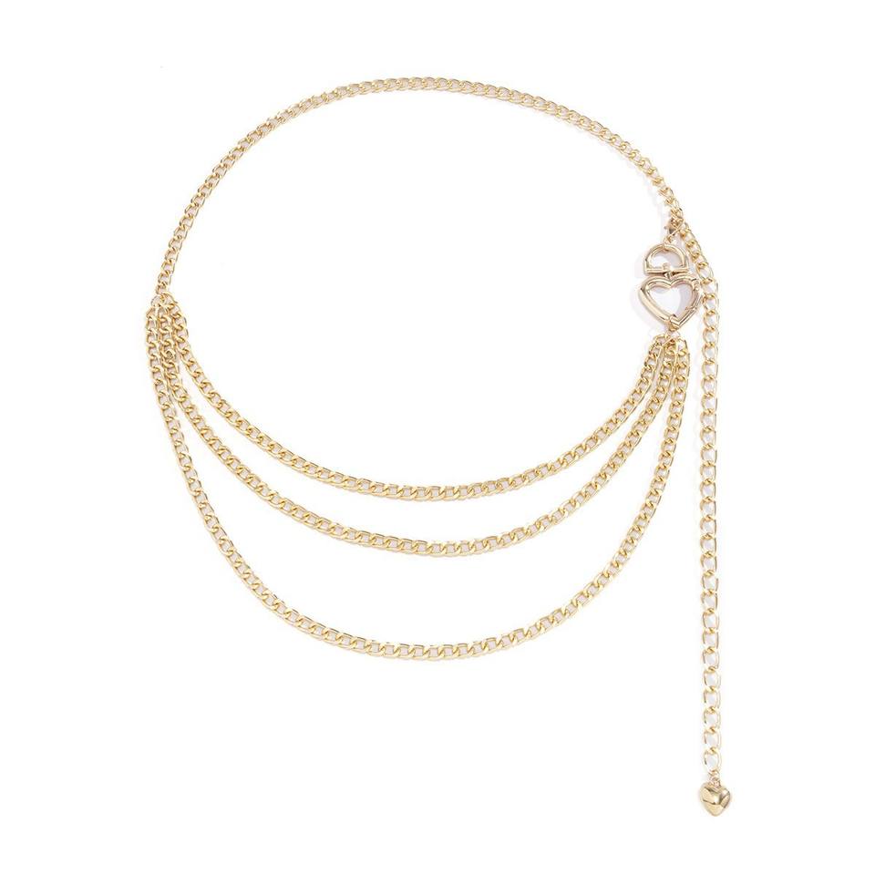 โซ่คาดเอวรูปหัวใจ โลหะผสมสังกะสี สีทอง สวมใส่ได้ทุกวัน แฟชั่นบอดี้เชน สไตล์ฮิปฮอป ดีไซน์แบบพันรอบเอว