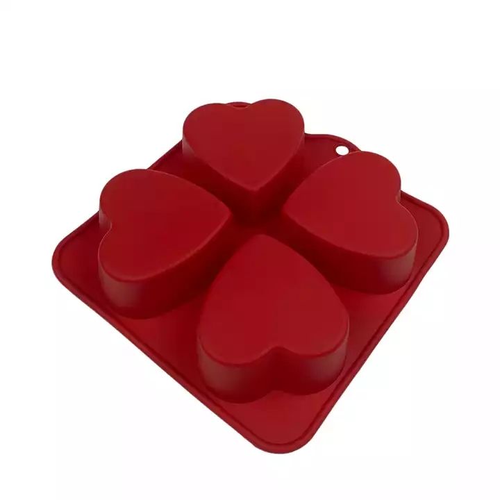 แม่พิมพ์เค้กซิลิโคน4ช่องรูปหัวใจถ้วยมัฟฟินไมโครเวฟปลอดภัยสำหรับอบขนมและทำอาหาร
