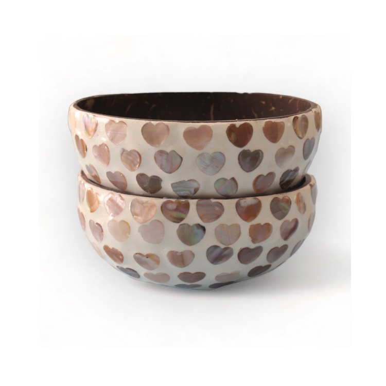 Heart Shaped Coconut Bowl with Natural Mother Pearl Inlay Disposable Lacquer Bowl Wholesale Gift for Someone Special