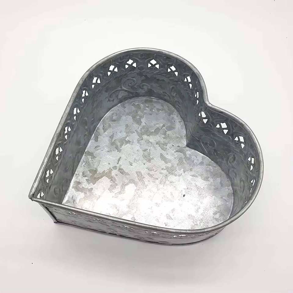 กล่องเก็บกระถางต้นไม้โลหะชุบสังกะสีรูปหัวใจสำหรับตกแต่งสวนกลางแจ้งหรือตกแต่งบ้านดีไซน์ถาดที่ทนทาน