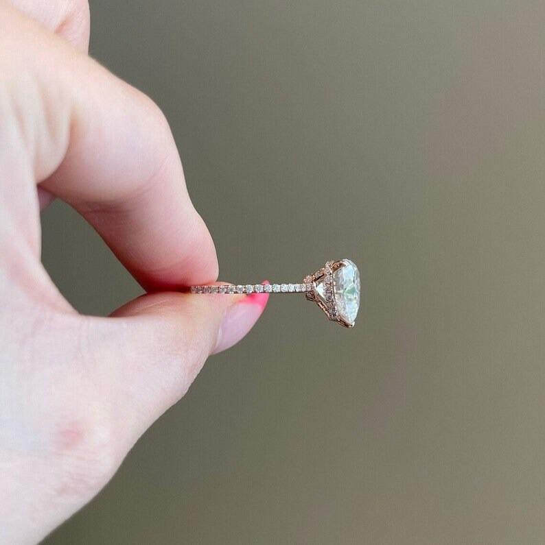แหวน Moissanite รูปหัวใจ 1.35 กะรัตแหวนหมั้นฮาโล่ที่ซ่อนอยู่สไตล์วินเทจแหวนเพชรหัวใจ