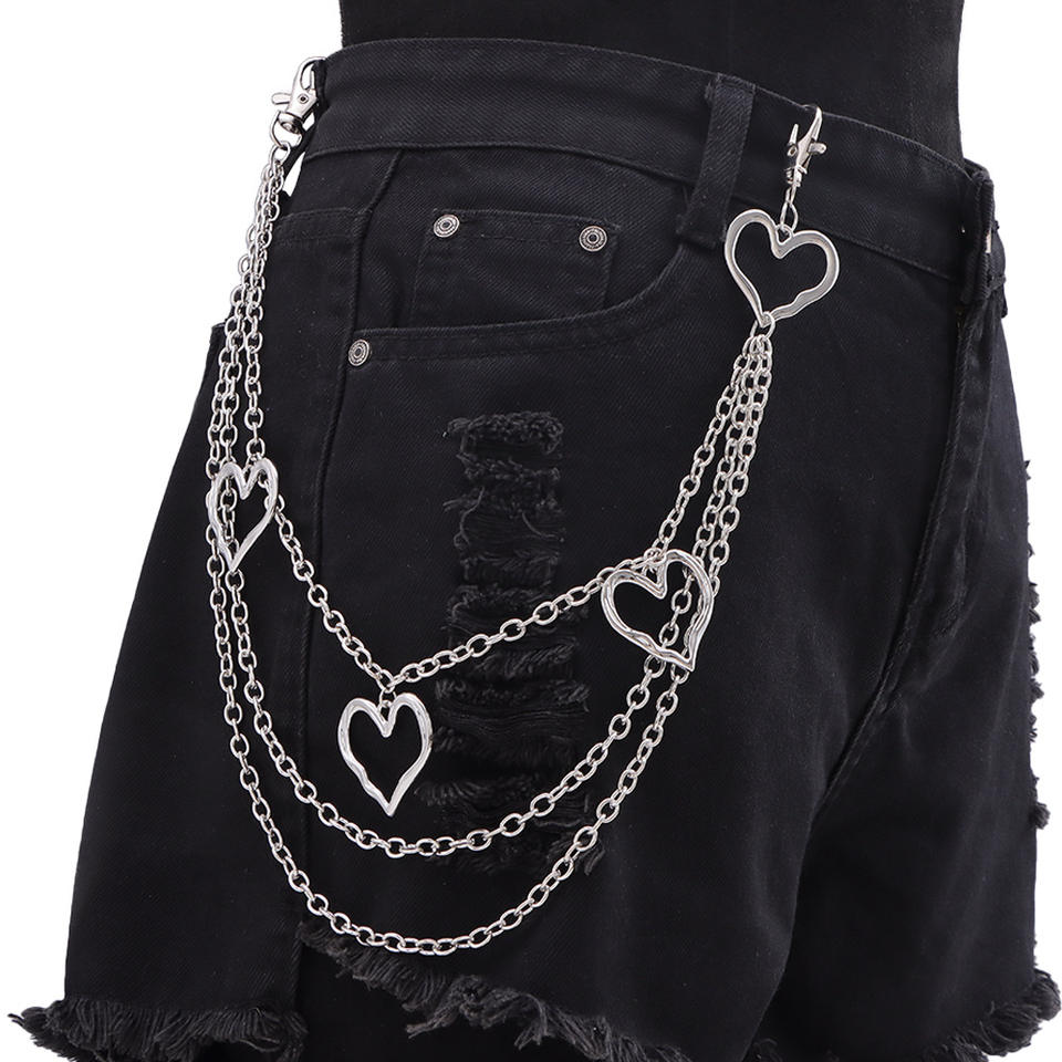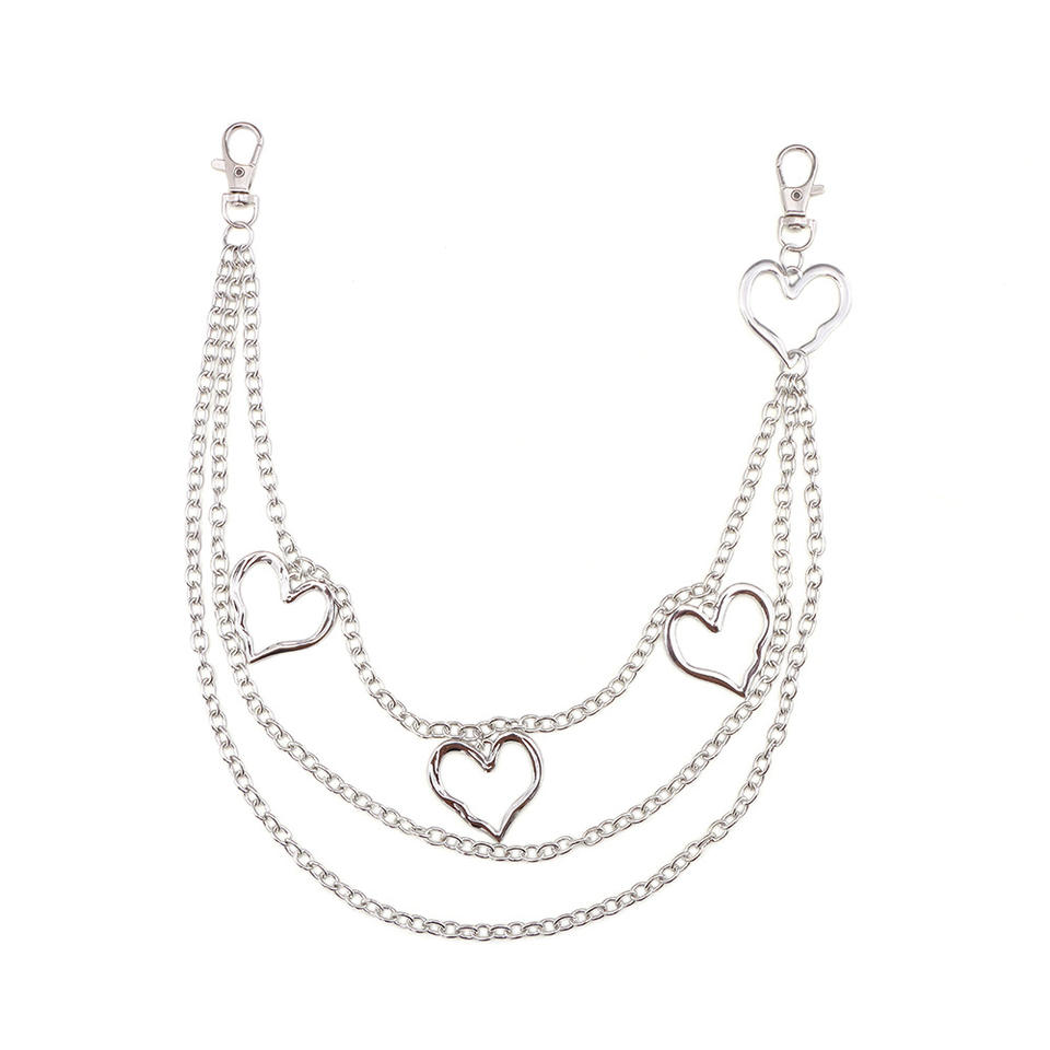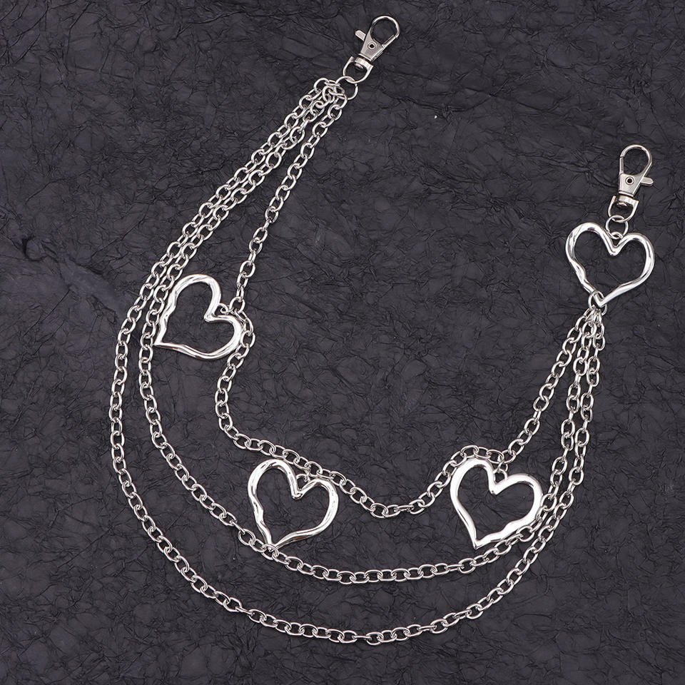 โซ่คาดเอวรูปหัวใจหลายชั้น สีเงิน สไตล์ฮิปฮอป สำหรับผู้ชายและผู้หญิง สวมใส่ได้ทุกวัน แฟชั่นเครื่องประดับร่างกาย