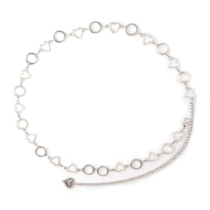 Heart-shaped waist chain, white gold heart-shaped waist chain