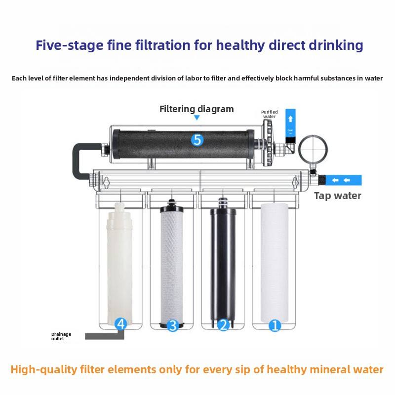 Heart Star Rain Five-Stage Ultrafiltration Water Purifier Small Stainless Steel Pressure Gauge for Households Factory Wholesale