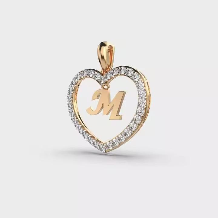 จี้เงินตัวอักษรเพชรโมอิสพร้อมสร้อยพร้อมจี้รูปหัวใจแบบ M ออกแบบได้ตามต้องการ