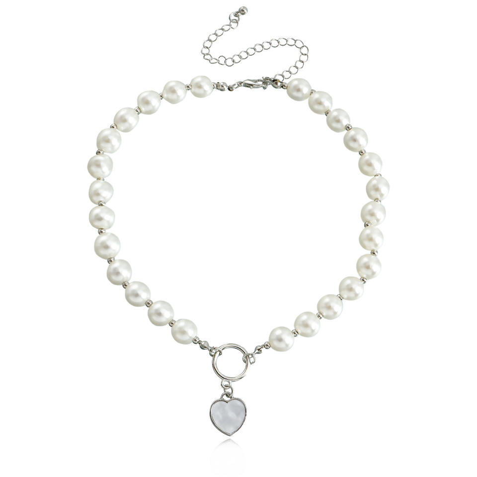 สร้อยคอรูปหัวใจแบบห้อยรูปกระดูกไหปลาร้าโซ่สไตล์ยุโรปและอเมริกาแบบหรูหราฝรั่งเศสระดับไฮเอนด์รู้สึกโชคดีสีขาว