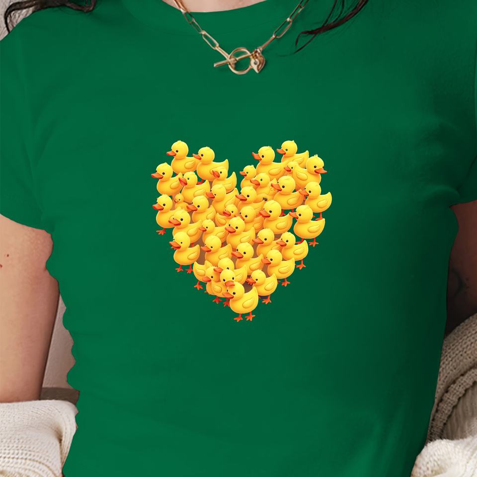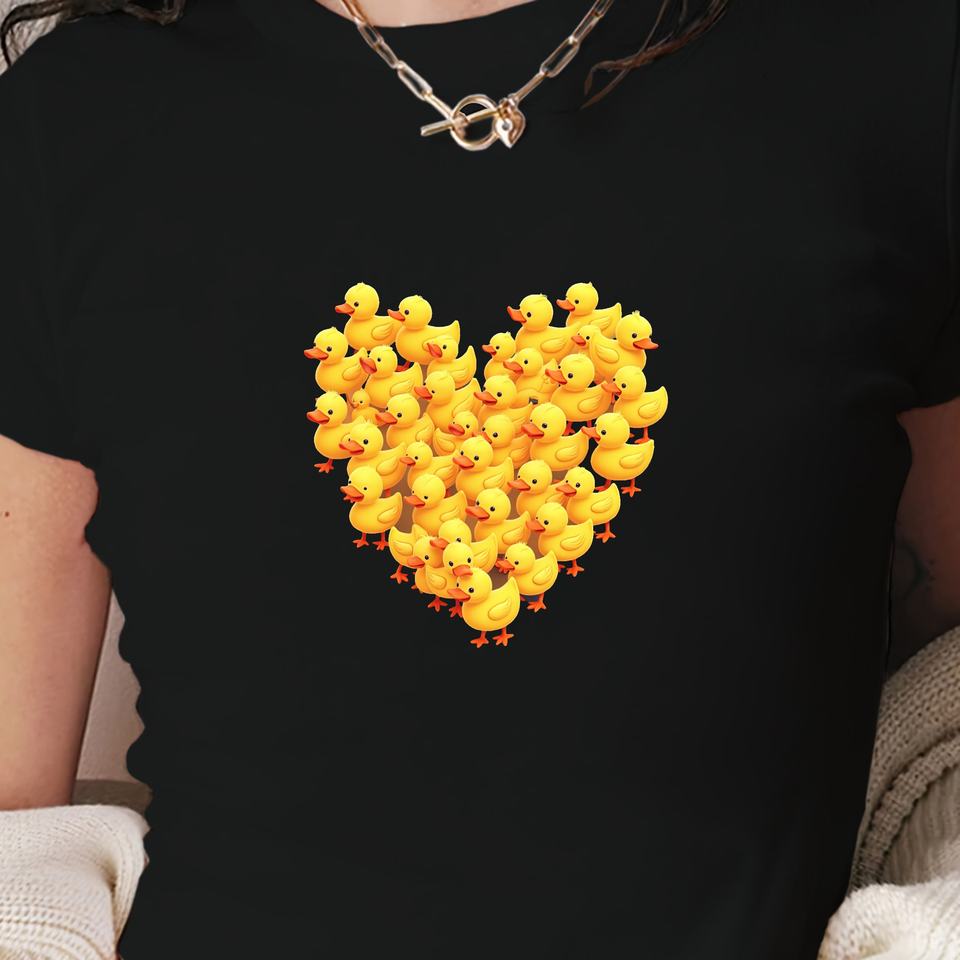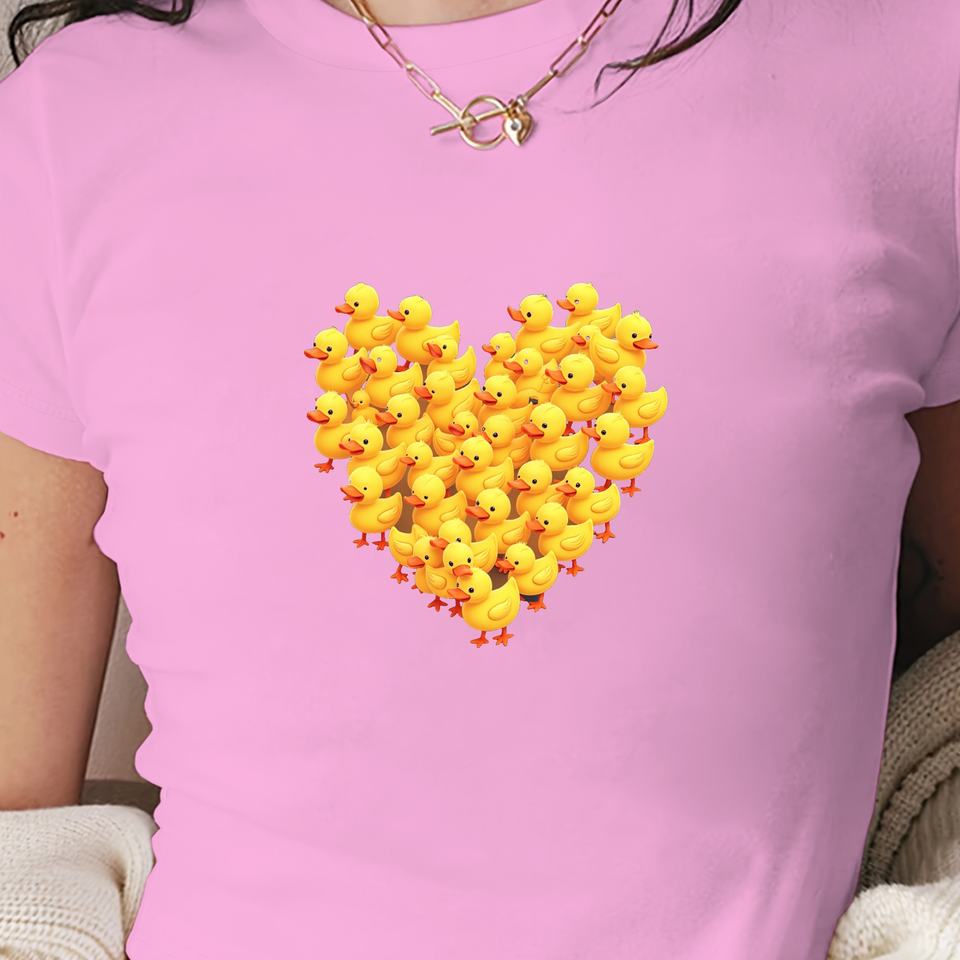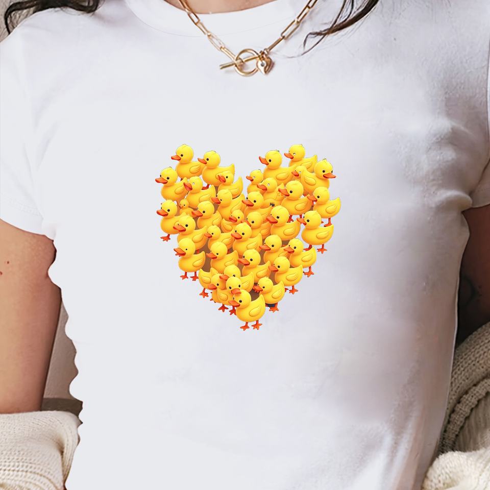 เสื้อยืดแฟชั่นผู้หญิงลายการ์ตูนเป็ดรูปหัวใจ