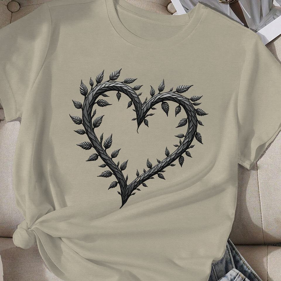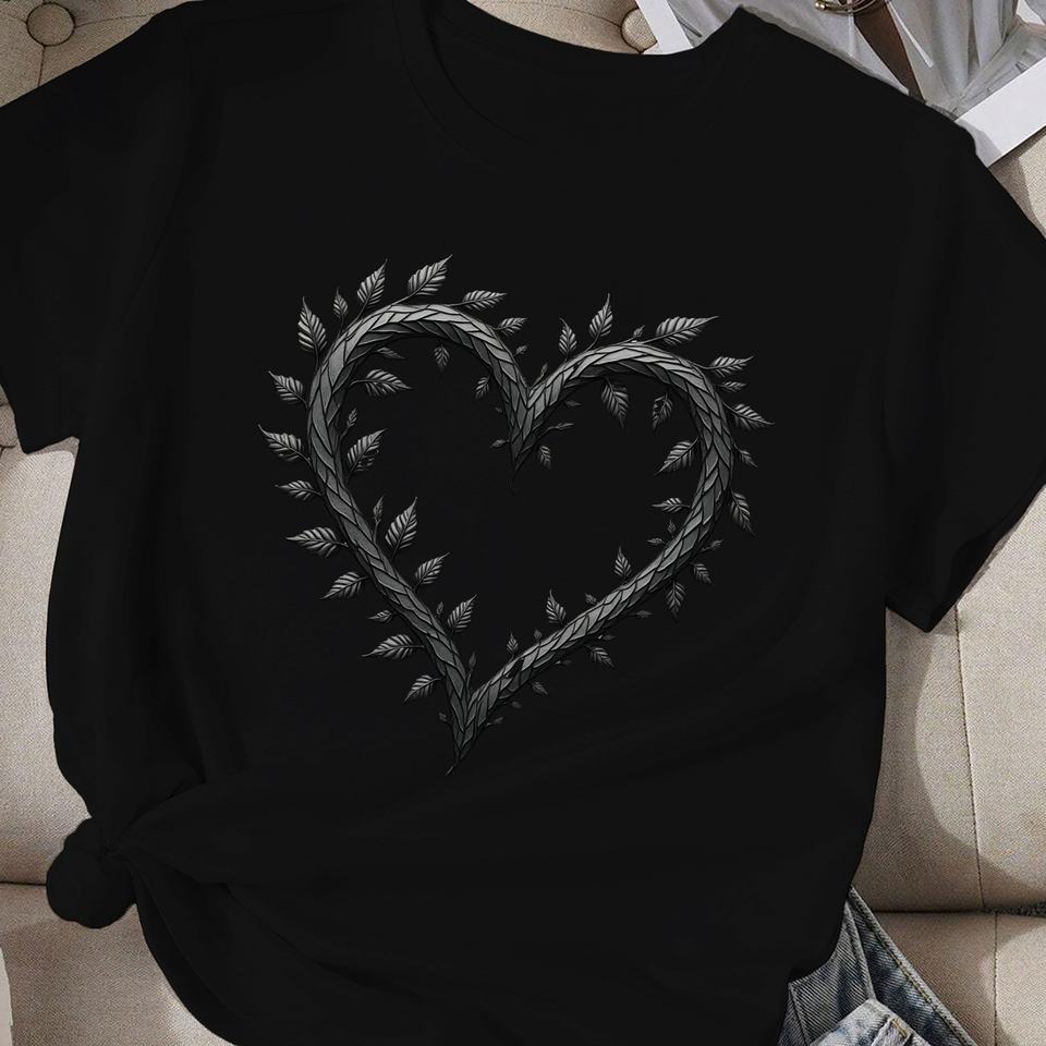 เสื้อยืดผู้หญิงหัวใจกับเถาวัลย์และใบไม้