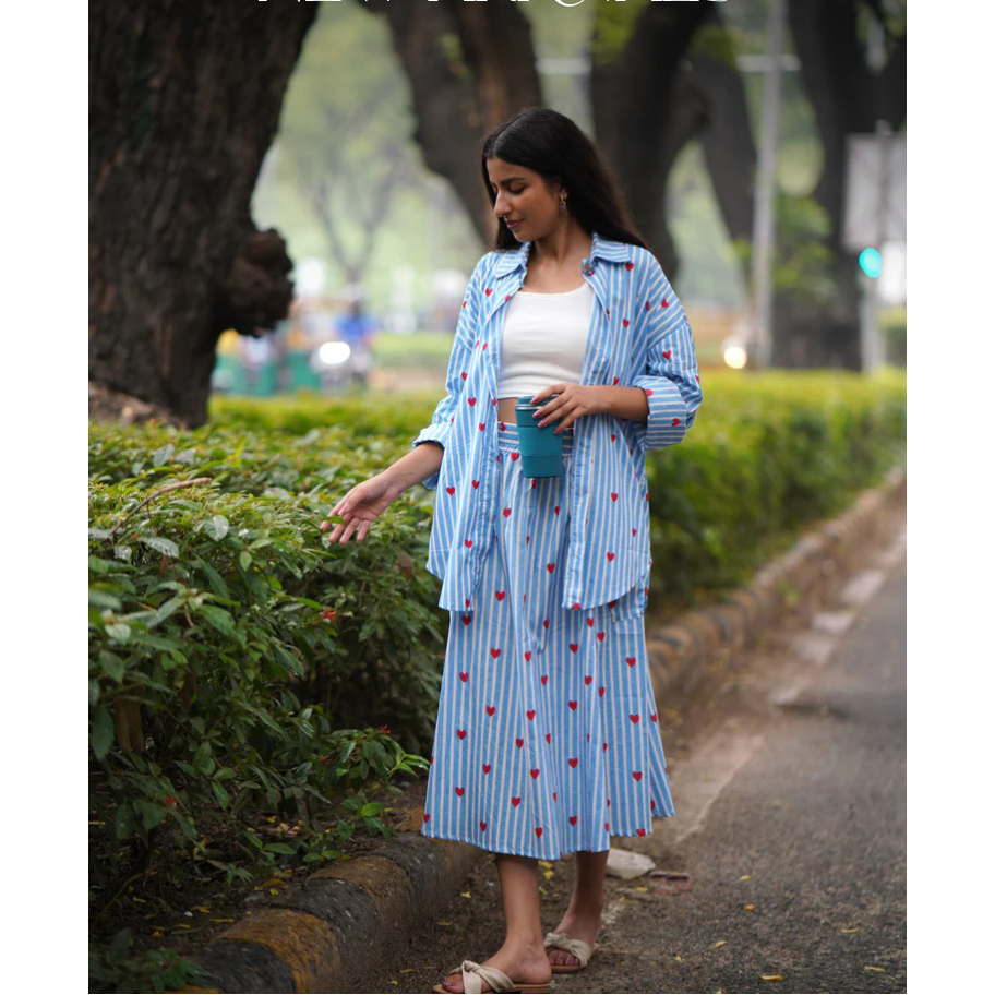 The Quince Life heartbeat สีน้ำเงินชุดกระโปรงและเสื้อเชิ้ต