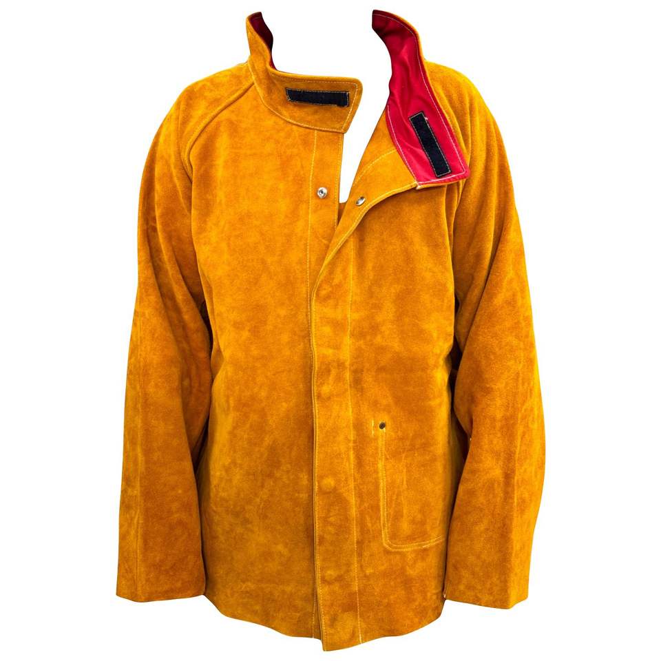 แจ็กเก็ตเชื่อมหนังวัวแบบแยกส่วนกันทนความร้อนและเปลวไฟผ้ากันเปื้อนกันลวก