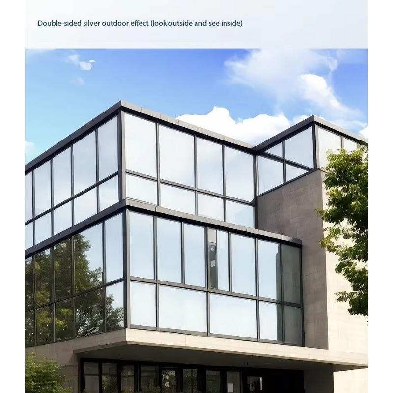 ฟิล์มติดกระจกสะท้อนแสงสีเงินแบบมองเห็นทางเดียว สำหรับบ้านและอาคาร ช่วยกันความร้อนและประหยัดพลังงาน ควบคุมแสงแดด