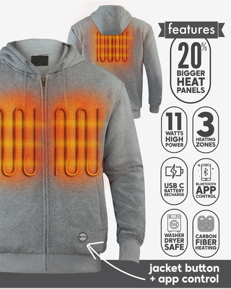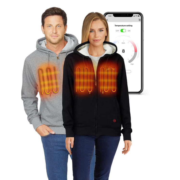 แจ็กเก็ตให้ความร้อนใช้ได้ทั้งชายและหญิงมีฮู้ดให้ความอบอุ่นบลูทูธหรือกางเกงวอร์มควบคุมแอปสเวตเตอร์พร้อมชุดแบตเตอรี่