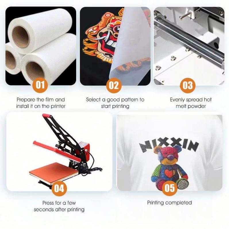ม้วนฟิล์มพิมพ์ความร้อน 30/60 ซม. แบบลอกได้ทั้งร้อนและเย็น สำหรับเครื่องพิมพ์อิงค์เจ็ท ฟิล์ม PET สำหรับงานทรานเฟอร์ DTF