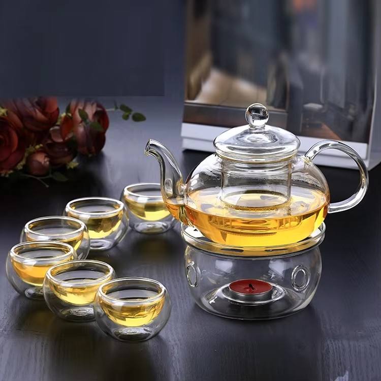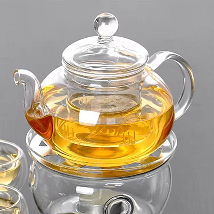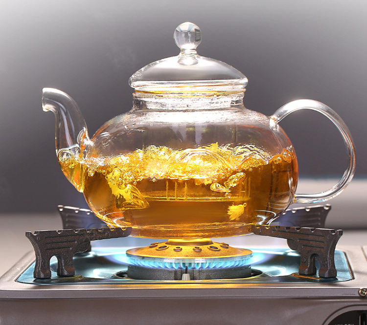 กาน้ำชาแก้วใสทนความร้อน 600 มล. 800 มล. 1000 มล. ทำด้วยมือจากแก้วบอโรซิลิเกต พร้อมที่กรองชาแก้ว