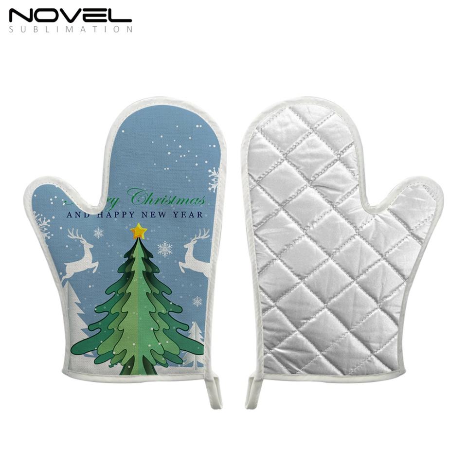 ถุงมือกันความร้อนสำหรับเตาอบ พร้อมซับในแบบควิลท์และห่วงแขวน ด้านหลังสีเงิน สำหรับงานซับลิเมชั่น