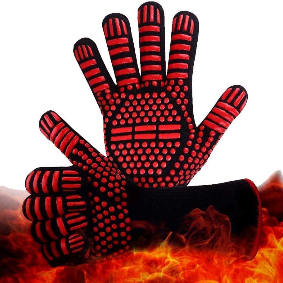 ถุงมือซิลิโคนกันความร้อนและกันไฟ ป้องกันการลื่น สำหรับใช้กับเตาบาร์บีคิวและในครัว