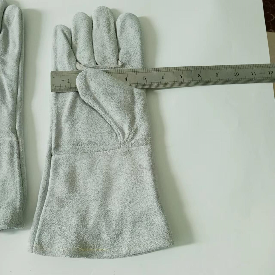 ถุงมือเชื่อมอาร์คสีขาวหนังวัวยาวซับในทนทานใช้ในงานอุตสาหกรรม