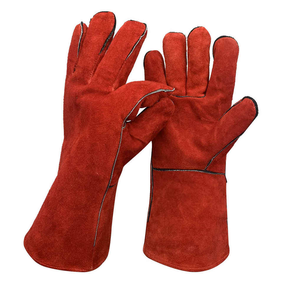 ถุงมือทำงานสำหรับช่างเชื่อมถุงมือหนังวัวสีแดงกันความร้อน