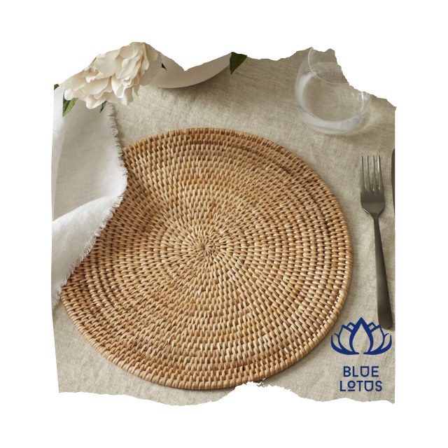 แผ่นรองน้ำผักตบชวาทรงกลมทนความร้อนเป็นมิตรกับสิ่งแวดล้อมพร้อมราคาจำนวนมากจากฟาร์มดอกบัวสีฟ้าเวียดนาม