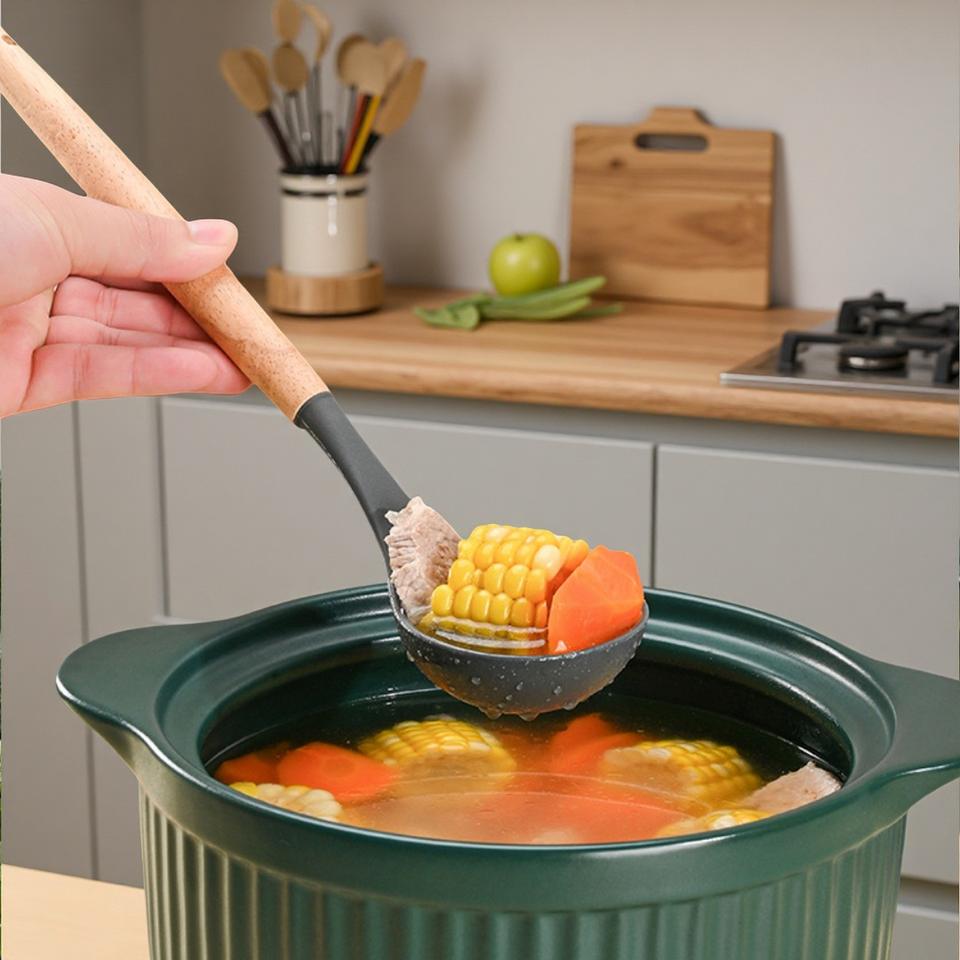 ช้อนซุปซิลิโคนด้ามไม้ (สีดำ)