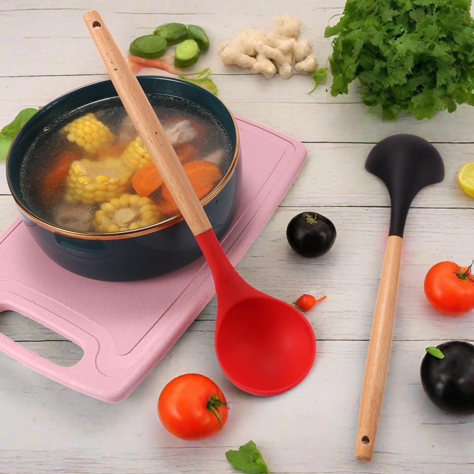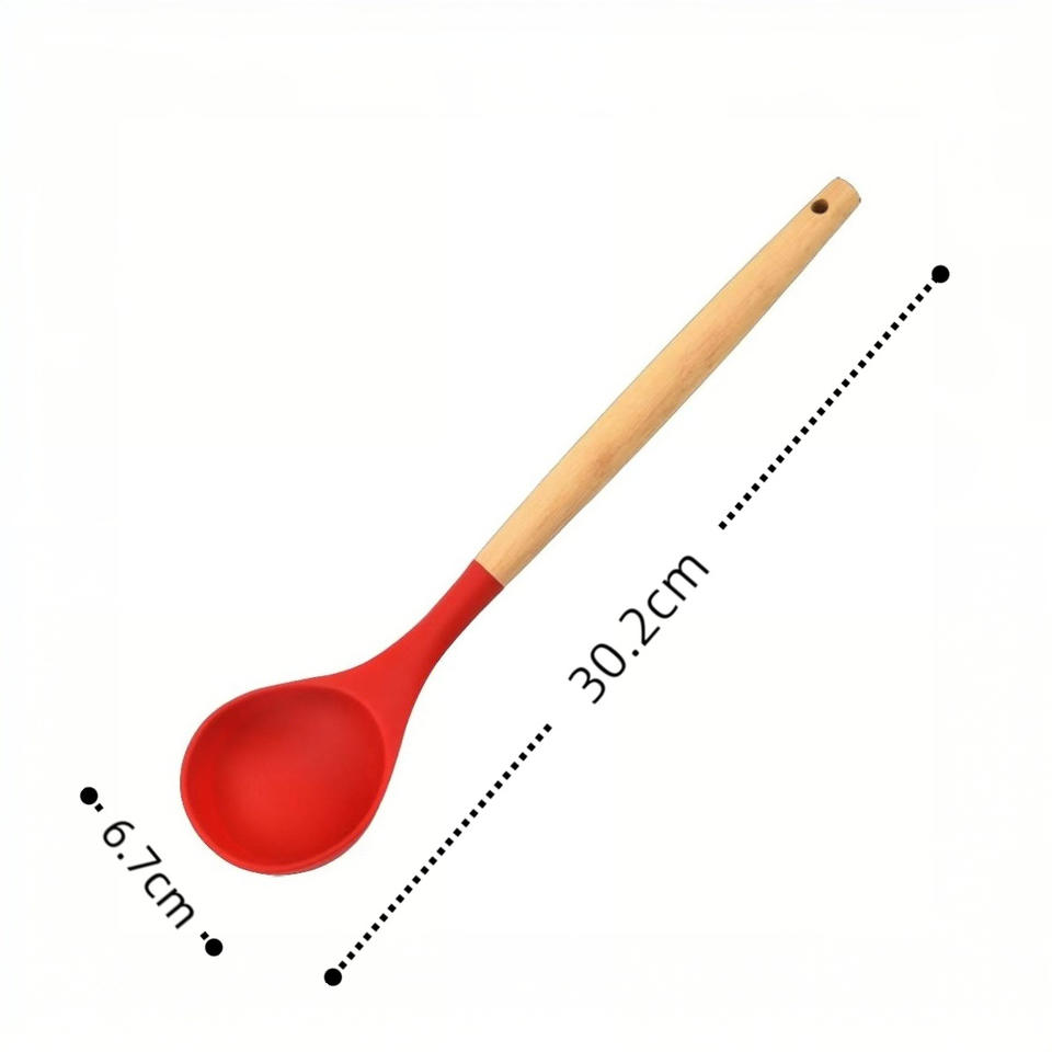ช้อนซุปซิลิโคนด้ามไม้ (สีแดง)