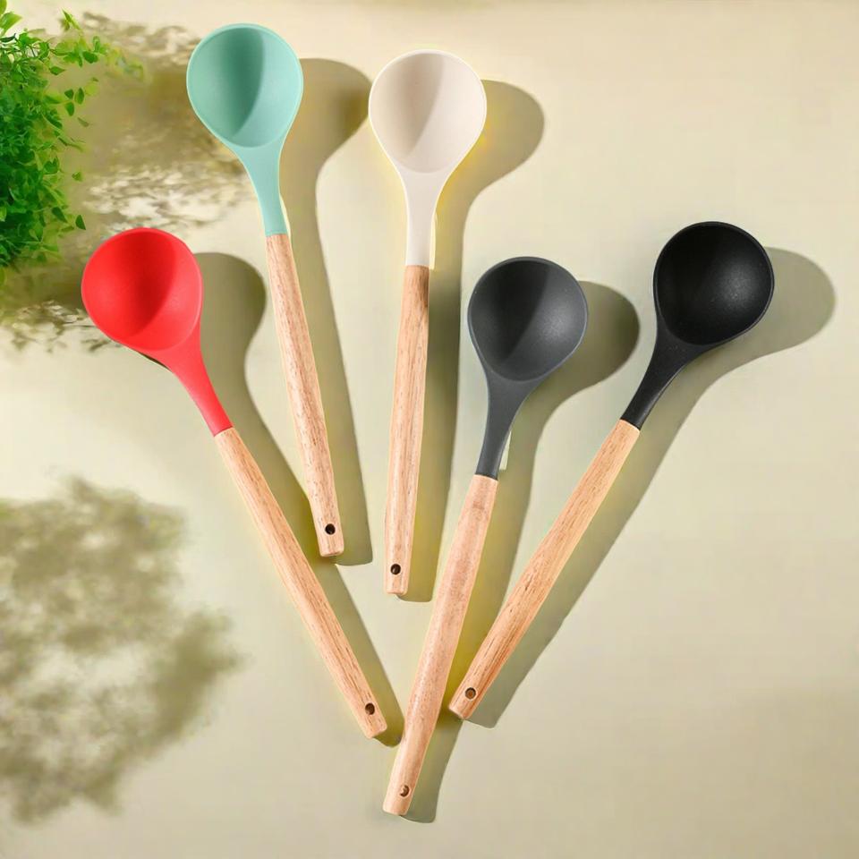 ช้อนซุปซิลิโคนด้ามไม้ (สีเขียว)