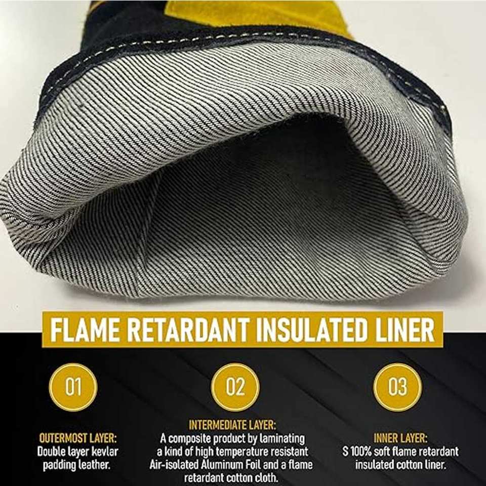ถุงมือทำงานเชื่อมหนังแยกแบบทนความร้อนถุงมือทำงานเชื่อมเกรดอุตสาหกรรมสำหรับงานหนัก