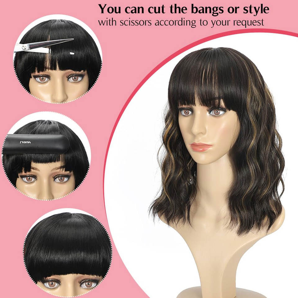 Heat Resistant Synthetic Wig for Black Women 14 Inch Wavy Curly Bob Wig Shoulder Length Natural Soft Hairpiece