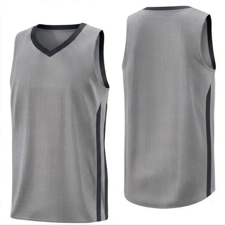 เสื้อบาสเก็ตบอลชายแบบไม่มีแขน คอวี ระบายอากาศได้ดี น้ำหนักเบา ผลิตจากโพลีเอสเตอร์ 100% พร้อมเทคโนโลยีป้องกันแบคทีเรียและพิมพ์ลายแบบ Heat Transfer เหมาะสำหรับทุกเพศ