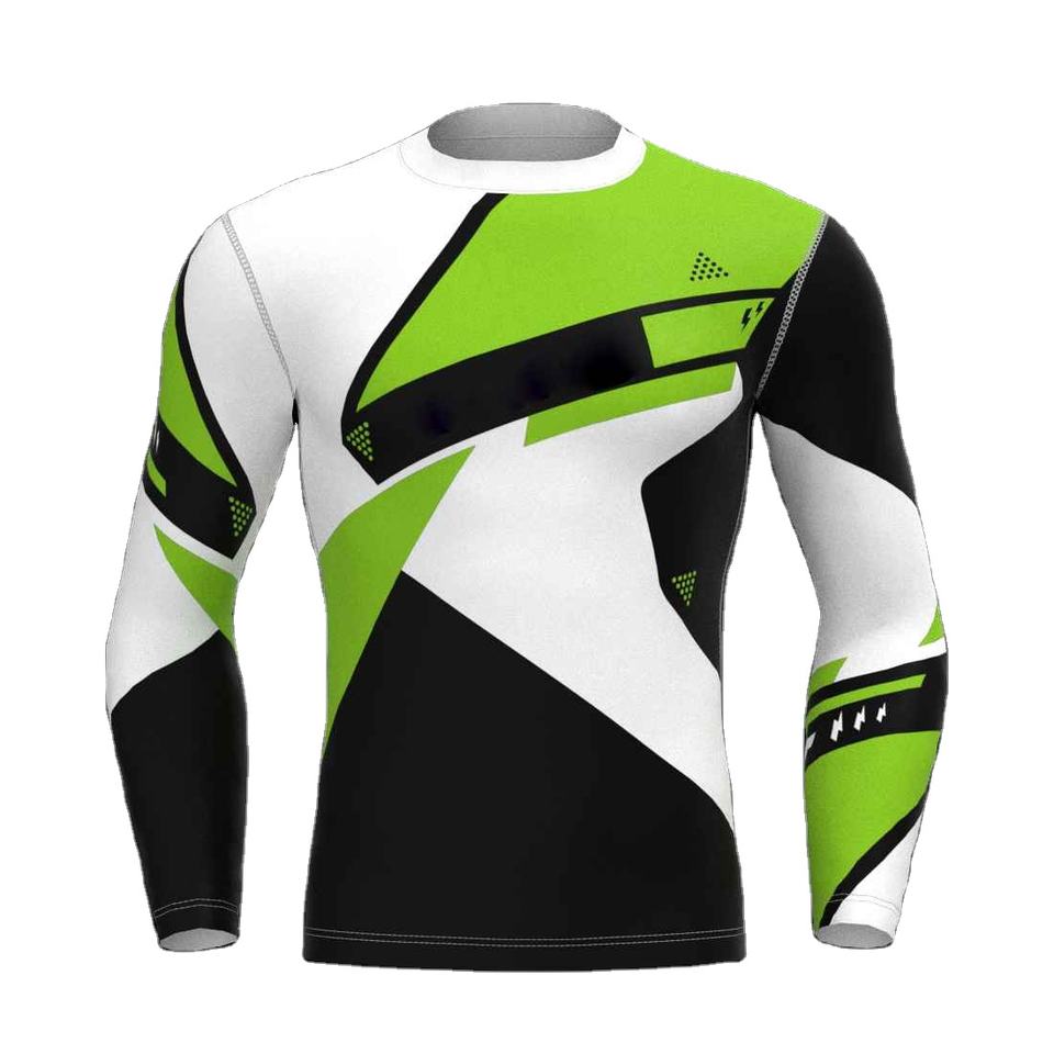 เสื้อแรชการ์ดแขนยาว ระบายอากาศ แห้งเร็ว ป้องกันแบคทีเรีย พิมพ์ลายด้วยเทคนิคการถ่ายเทความร้อน ผลิตจากโพลีเอสเตอร์และไนลอน สำหรับผู้ใหญ่ ใส่ได้ทั้งชายและหญิง