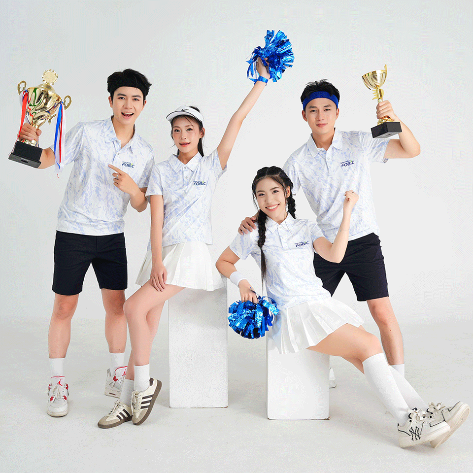 เสื้อกีฬาโพลีเอสเตอร์พิมพ์ลายแบบถ่ายเทความร้อน คอเสื้อปรับแต่งได้ ระบายอากาศได้ดี เหมาะสำหรับทุกเพศ ชุดทีมกลางแจ้ง ชุดยูนิฟอร์มทีม
