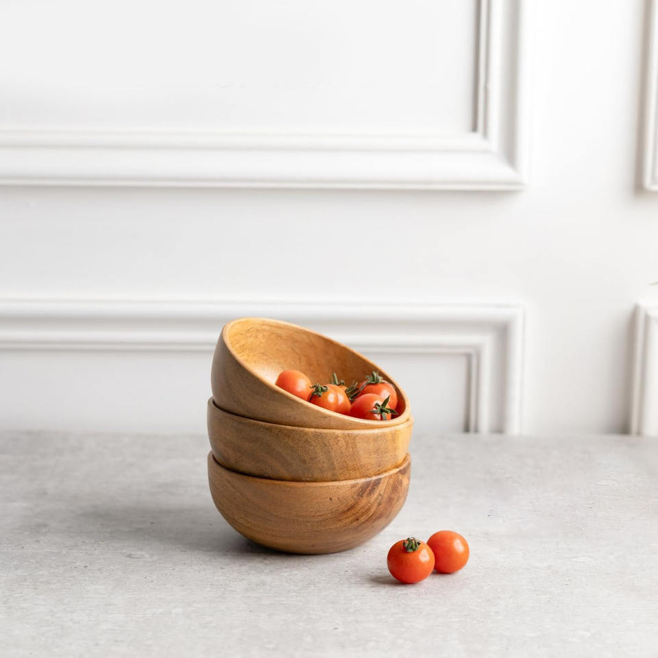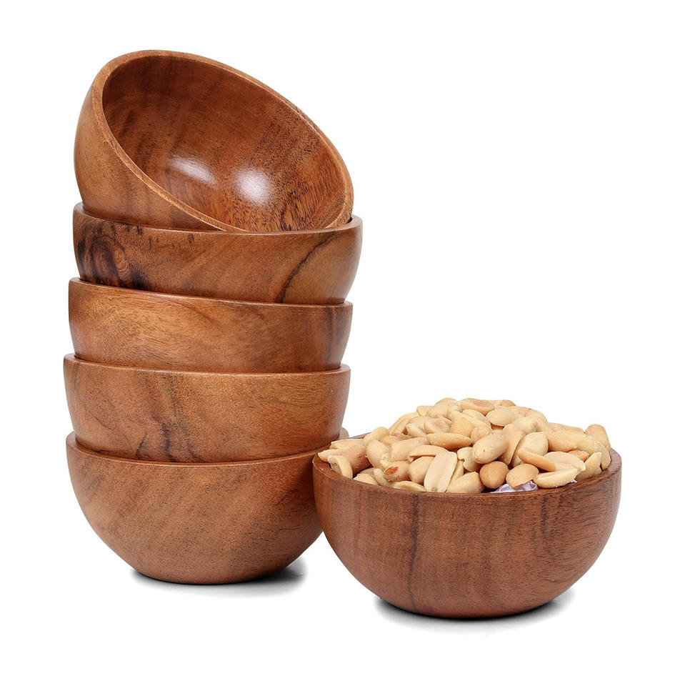ชามไม้อะคาเซียสำหรับอาหารค่ำทำมือทนความร้อนอุปกรณ์ครัวสำหรับเด็ก