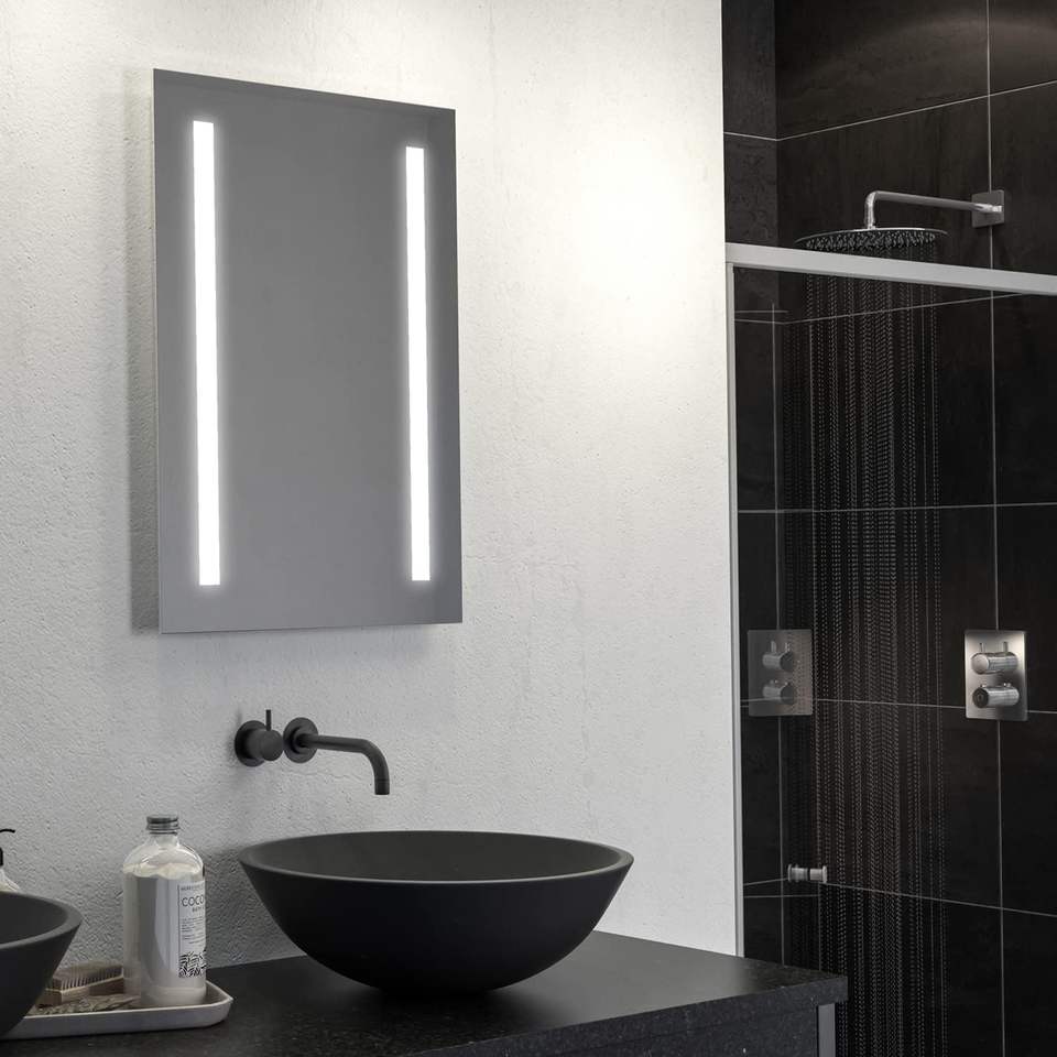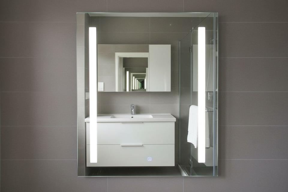 กระจกอุ่นร้อน 350W 240V ป้องกันฝ้า อินฟราเรดไร้กรอบ LED ให้ความร้อนเร็ว ดีไซน์เรียบหรูสีขาว ควบคุมอัจฉริยะ ป้องกันความร้อนเกิน ติดตั้งบนเพดาน